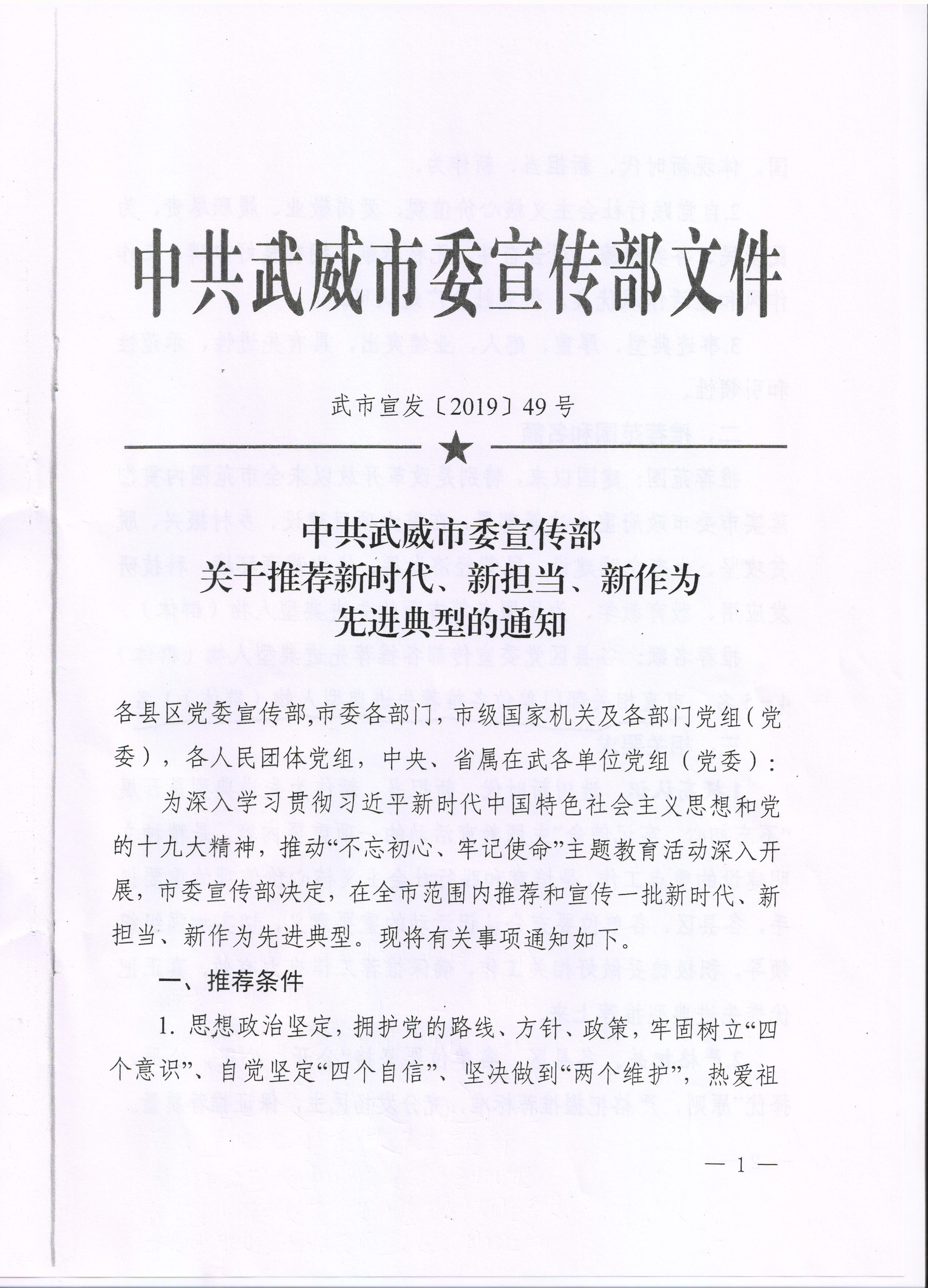 附件:《中共武威市委宣傳部關(guān)于推薦新時代、新?lián)?dāng)、新作為先進(jìn)典型的通知》