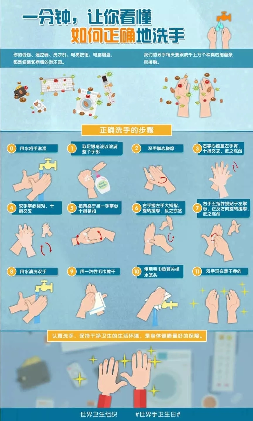 正確的洗手方法才能有效預(yù)防疾病。在日常生活中,我們可以按以下步驟來正確洗手。