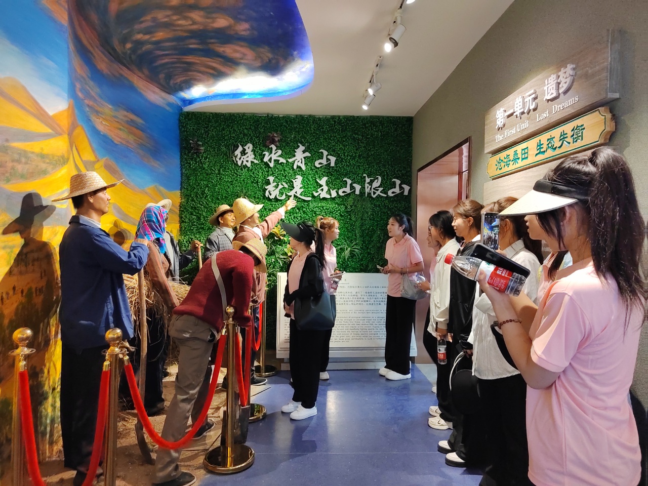 活動(dòng)中,教師黨員們沿著“六老漢”治沙足跡,參觀了八步沙治沙紀(jì)念館。一張張泛黃的老照片、一件件磨損的勞動(dòng)工具、一段段感人的治沙故事,生動(dòng)再現(xiàn)了上世紀(jì)80年代以來(lái),以郭朝明、賀發(fā)林等為代表的“六老漢”,面對(duì)“狂風(fēng)卷黃沙,荒灘無(wú)人家”的惡劣環(huán)境,立下“一棵也不能少”的誓言,用雙手在沙漠邊緣筑起綠色屏障的壯舉。三代人接力治沙,從“一棵樹”到“一片林”,從“沙進(jìn)人退”到“綠進(jìn)沙退”,用堅(jiān)守與奉獻(xiàn)詮釋了“艱苦奮斗、無(wú)私奉獻(xiàn)、鍥而不舍、久久為功”的八步沙精神。