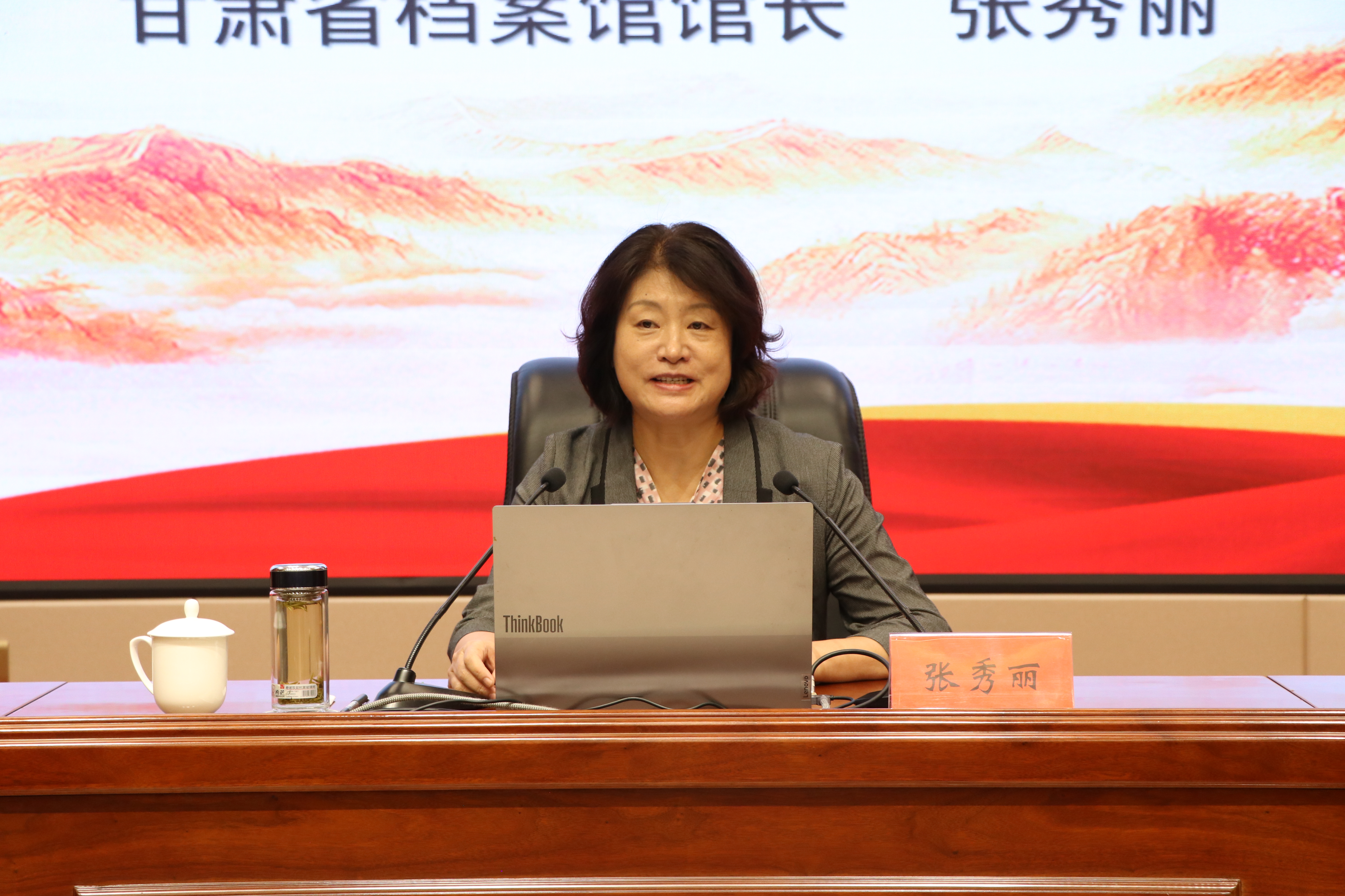 張秀麗結(jié)合自身從事檔案管理和文化研究的豐富經(jīng)驗,從檔案“存史、資政、育人”根本任務(wù)出發(fā),通過大量珍貴檔案文獻(xiàn)和歷史案例,系統(tǒng)闡述了檔案在記錄民族苦難輝煌、服務(wù)當(dāng)代治國理政、培育時代新人中的重要作用。報告中,她以館藏漢代簡牘、革命烈士叢德滋00001號烈屬證、民勤治沙檔案、甘肅地震檔案等一批具有歷史代表性和地域特色的檔案為載體,帶領(lǐng)師生穿越時空,感受中華民族生生不息的精神力量,深刻解讀“勿忘昨天的苦難輝煌,無愧今天的使命擔(dān)當(dāng),不負(fù)明天的偉大夢想”的時代內(nèi)涵。