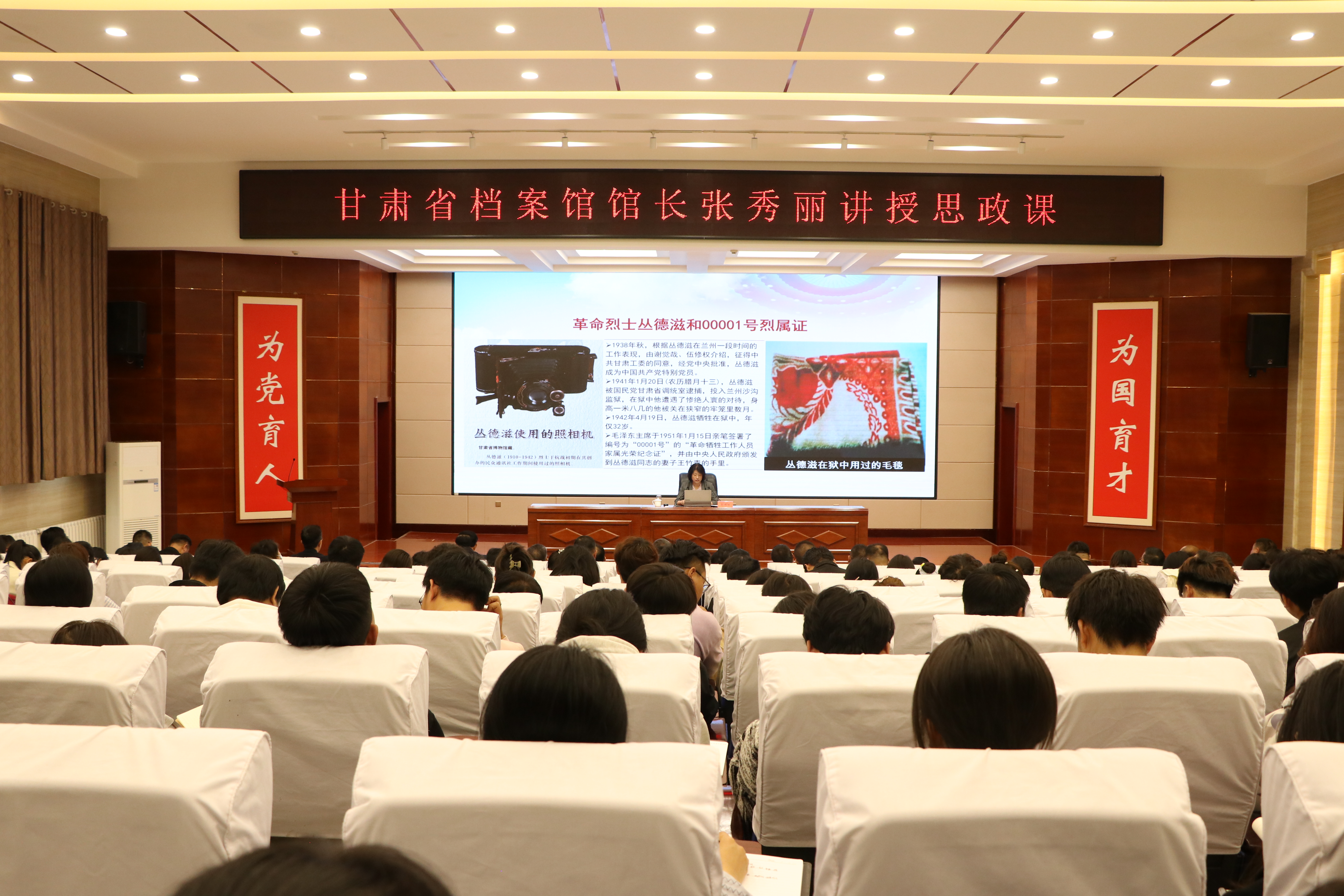 甘肅省檔案館館長張秀麗到武威職業(yè)技術(shù)大學(xué)為師生講授思政課